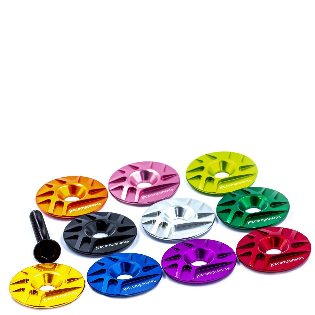 Transform your bike's aesthetics with our Lightweight Aluminium Ahead Stem Top Cap, featuring the distinctive JRC Logo. Available in 10 vibrant anodized colours, these caps offer a personalized touch to your bike's look. Crafted from high-quality aerospace-grade 6061-T6 Aluminium, these top caps are not only visually appealing but also ensure durability and are compatible with 1 1/8'' steerers​​​​​​. Each cap is a testament to skilled craftsmanship, offering exquisite detail that truly sets your ride apart​​.