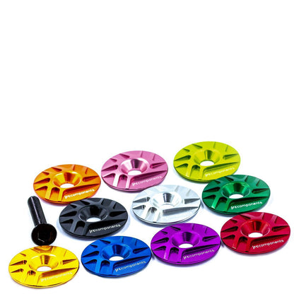 Enhance your bike's aesthetics with our Lightweight Stem Top Cap, adorned with our pathway design. Available in a range of 10 vibrant anodized colors, our machined aluminium caps offers a customised touch to elavate your bike's aesthetics with a personalised flair.